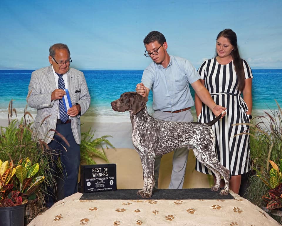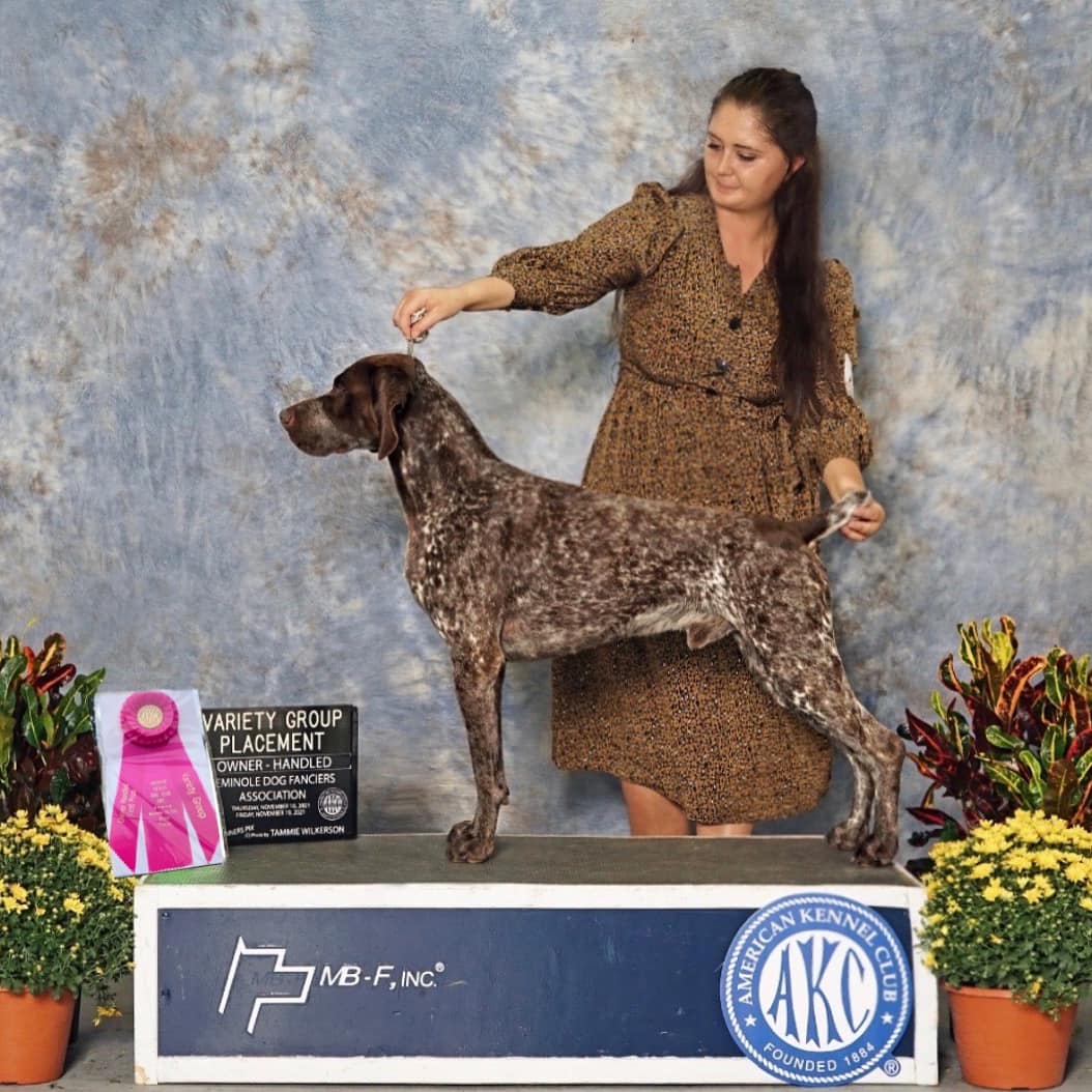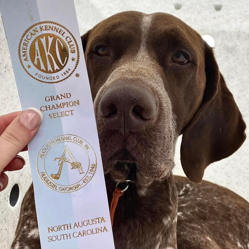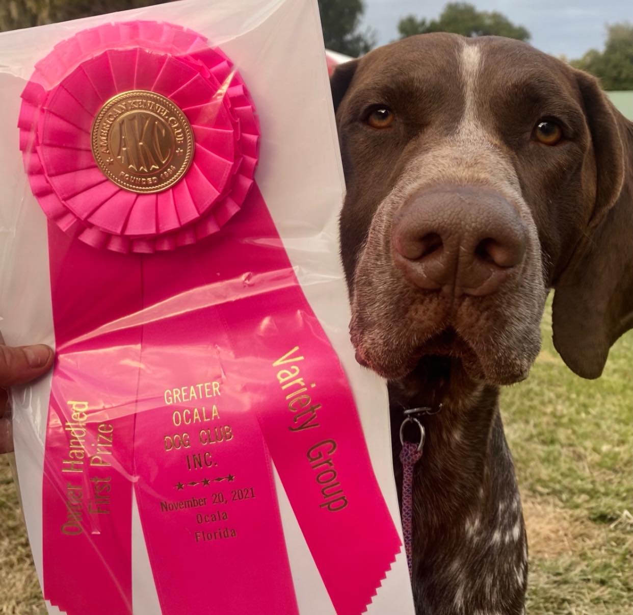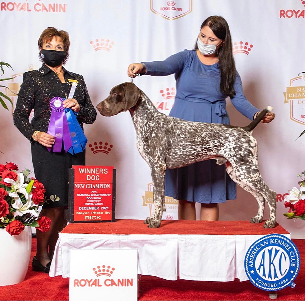 Walker finishes his Championship is STYLE by going Winner’s Dog at the North Florida German Shorthaired Pointer Club Specialty Show and then Winner’s Dog again the next day at the AKC National Championship! Thank you to breeder judge Brenda Straight and to Pamela Lambie for the very prestigious wins. We are so honored!