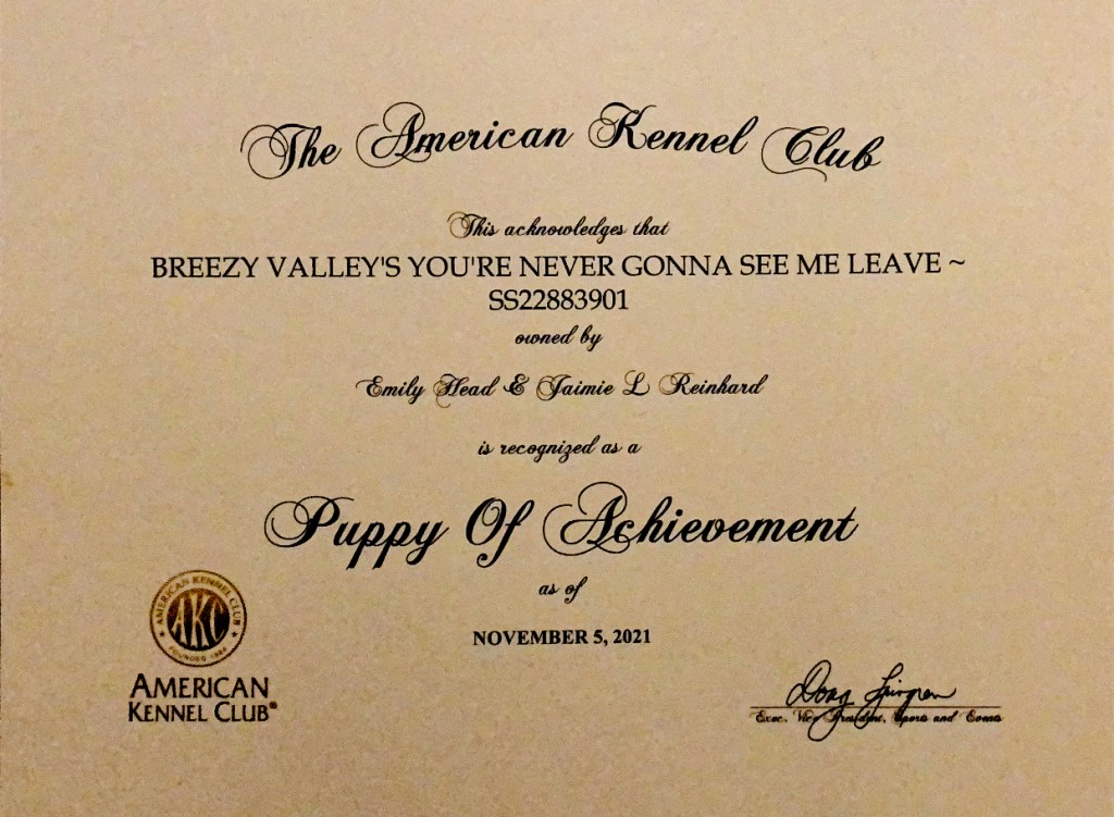 Wynn kicked off her show career at 11 months old in a BIG way!! First time ever in a ring, and she scored herself a Breed WIN from the classes. She went on to Winner’s Bitch & Best of Winners the following day. Thank you judges for starting her off on the right foot!