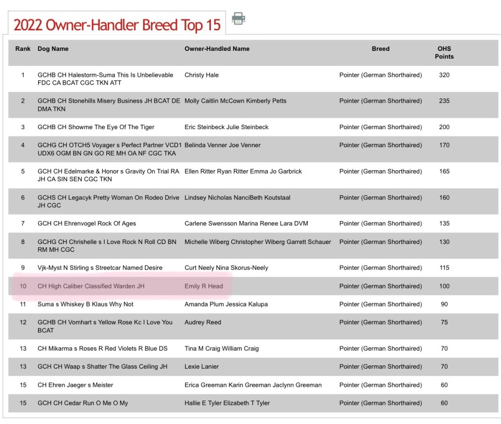 Ward starts off 2022 as the #10 German Shorthaired Pointer, Owner Handled!
