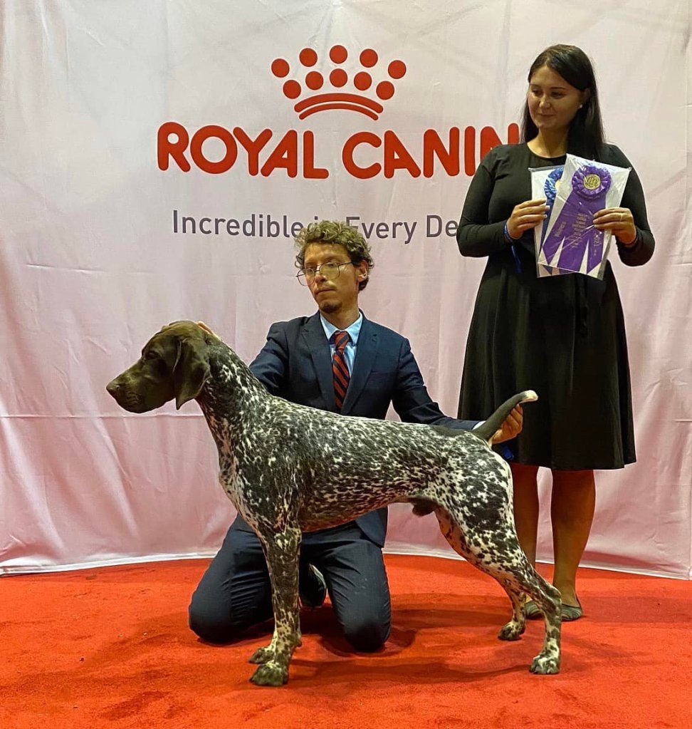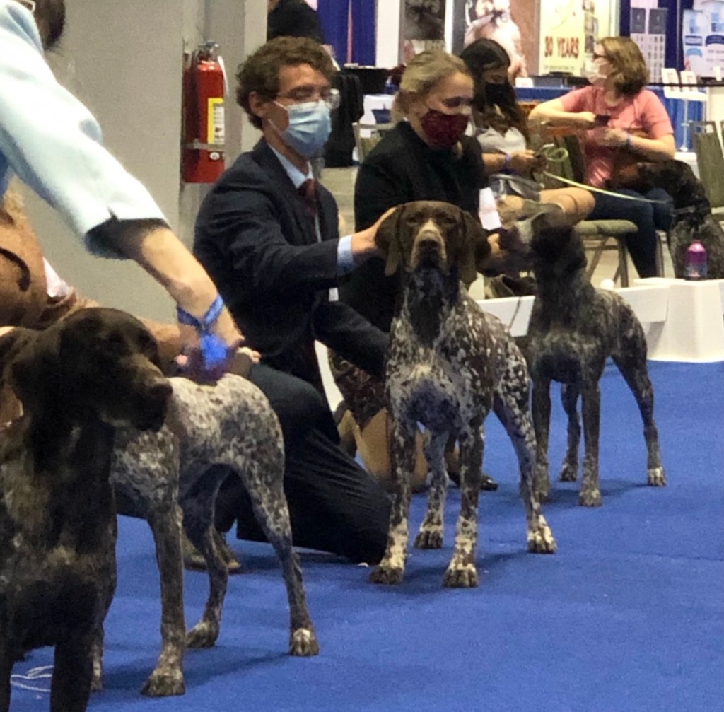 Walker made his dog show debut in a HUGE way, going Best of Winners for a MAJOR his very first time in the ring at seven months old under judge Dr. Donald Spritzer. Walker finished his Championship in extremely limited showing, going Winner’s Dog at the North Florida GSP Club Specialty Show and again at the 2021 AKC National Championship. Thank you to all the judges who awarded Walker along the way. Walker is taking a break from showing to earn his Junior Hunter this winter.
