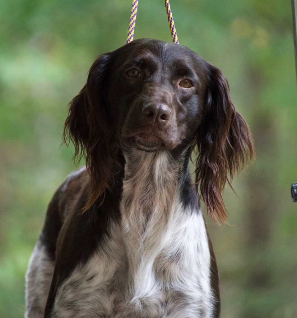 Witten is a six year old female Small Munsterlander from Wolf Creek Kennel in Illinois, USA. She is fast and agile in the field, calm and collected in the show ring, and the world’s biggest ham in the house. Witten has a fantastic nose and a bold talent for tracking. Her strong prey drive and willingness to work make her a fun dog to have in the field. She has been trained and handled by 20 year old, first time bird dog owner – which speaks highly to her trainability and cooperation. No offense, Shelby.